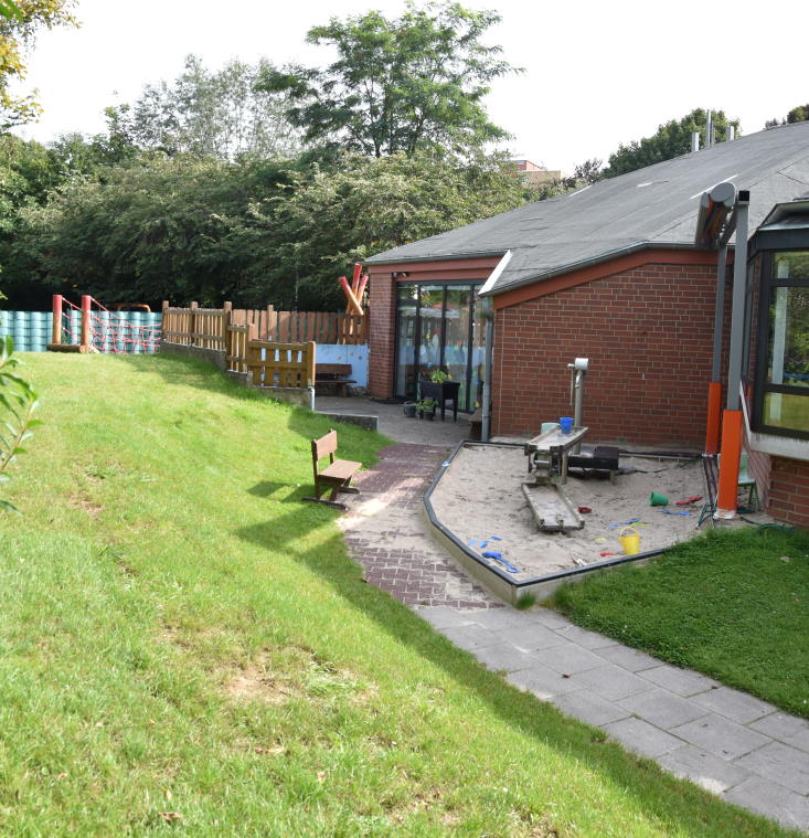 Ausgestattet ist dies mit einem kleinen Wipp-Elefanten für unsere Kleinsten, einer großen Vierplatz-Wippe, einem U3- sowie Ü3-Klettergerüst, einer Nestschaukel, einem kleinen Spielhaus, einem Sandkasten, einem Sandkasten mit Matschanlage, einer Benjes Hecke (Naturhecke),einer Dschungelbrücke sowie einem Tipi.